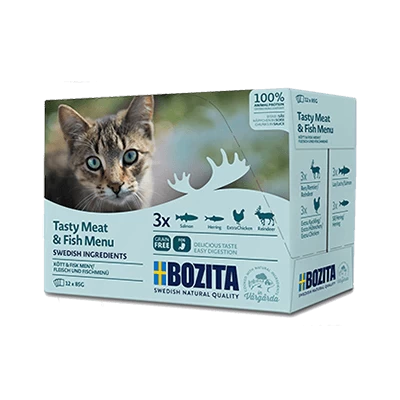 Fleisch und tierische Erzeugnisse* 42%, Lachs* (8%), Mineralstoffe, Chicorée-Inulin (FOS 0,1%) *Natürliche schwedische Zutaten.