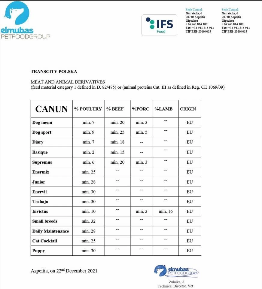 Canun Supremus ist ein Futter mit größerem Granulat, das für erwachsene Hunde aller Rassen und Größen empfohlen wird. Seine hohe Qualität wird von Züchtern des Deutschen Schäferhundes sowohl in Polen als auch im Ausland bestätigt. Das Futter eignet sich hervorragend für die Fütterung von Hunden mit normaler körperlicher Aktivität. Canun Supremus hat nicht nur eine reichhaltige Zusammensetzung (Fleisch, Getreide – Mais, Öle, Fette, Produkte pflanzlichen Ursprungs, eine Reihe von Vitaminen und Mineralien, Fisch und Produkte fischigen Ursprungs), sondern auch desinfizierende Eigenschaften, was es perfekt für Hunde macht, die z.B. auf Spaziergängen gerne verdorbenes Futter fressen. Canun Supremus trägt auch dazu bei, das Fell Ihres Hundes in gutem Zustand zu halten.