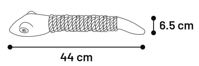 Schlauch aus strapazierfähigem Material. Enthält einen Quietscher mit einem knisternden Geräusch, das Ihr Haustier lieben wird. Um das Spiel abwechslungsreich zu gestalten, ist der Schlauch mit verschiedenen Texturen (Seil) versehen.