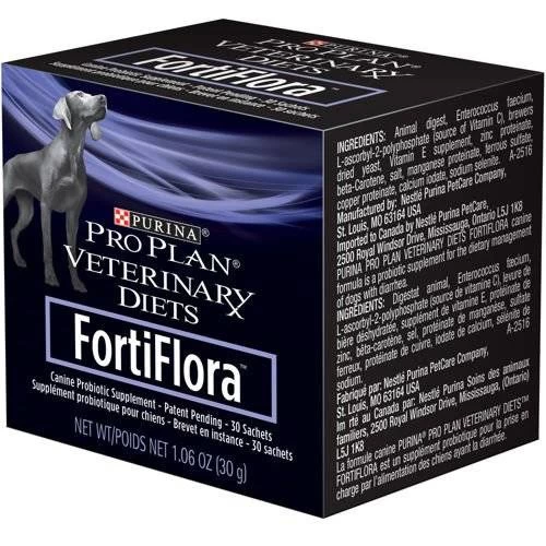 PURINA PVD FortiFlora Dog ist ein Ergänzungsfuttermittel für erwachsene Hunde und Welpen zur Unterstützung einer gesunden und ausgewogenen Darmfunktion. Ein garantiert verkapseltes Ergänzungsmittel, das nachweislich die Gesundheit des Magen-Darm-Trakts unterstützt und das Immunsystem stärkt.