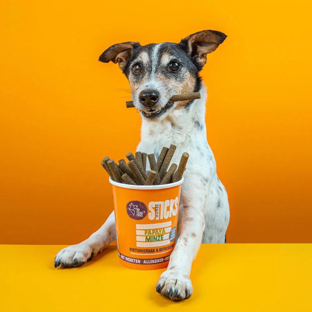 Insekten verbrauchen im Vergleich zu anderen tierischen Eiweißquellen nur einen Bruchteil der natürlichen Ressourcen. Deshalb sparen Sie mit jedem Stick bis zu 48 Liter Wasser, und wenn die Sticks aufgegessen sind, kann der leere Becher im Altpapier entsorgt werden, da er aus Pappe besteht. Simply woof: Nachhaltige Leckerlis aus Insektenprotein
