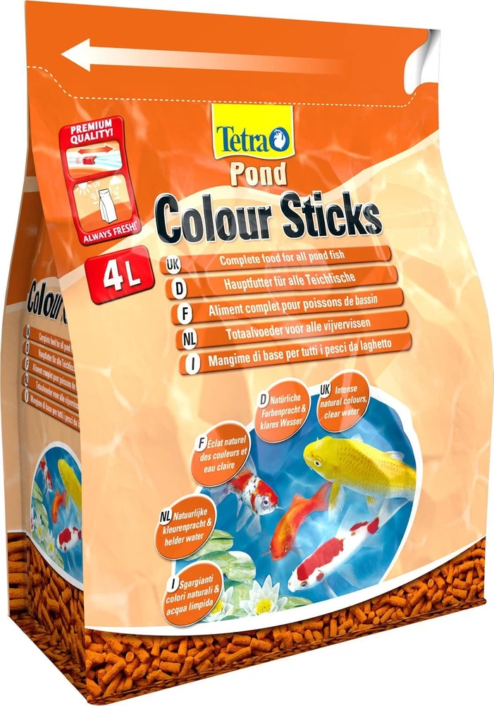 Tetra Pond Color Sticks – Lebensmittel in Form von Sticks, die auf der Wasseroberfläche schwimmen. Verbessert die Intensität der natürlichen Färbung von Fischen.