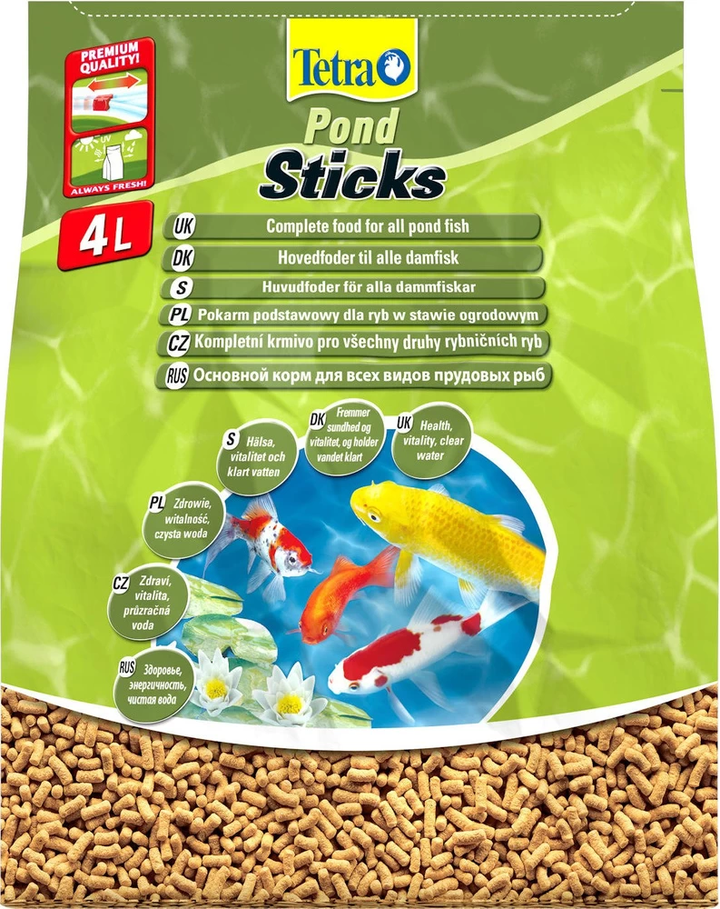 Bei den TetraPond Teichfischfutter Sticks handelt es sich um ein vollwertiges Hauptfuttermittel zur gesunden und ausgewogenen Ernährung aller Gartenteichfische. Aufgrund der leichten Aufnahme und guten Verdaulichkeit wird das Wasser kaum belastet, was sich in der Folge positiv auf die Wasserqualität auswirkt.