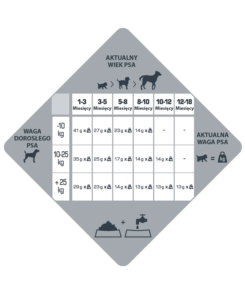 Unsere Welpenfutterformel enthält zusätzliches Kalzium und Phosphor sowie Krill (eine natürliche Quelle für EPA- und DHA-Omega-3-Fettsäuren) und Taurin, um eine optimale Entwicklung von Skelett, Gehirn und Sehkraft zu gewährleisten.