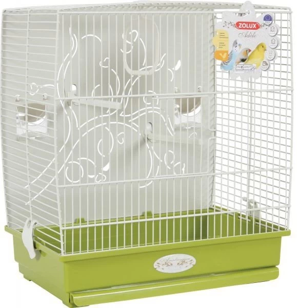 Ausstattung: 2 Futterstellen, 2 Sitzstangen, 1 Schaukel, 1 Schublade.