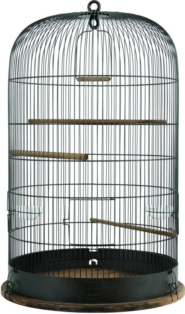- Der Käfig Retro Marthe ist mit drei Sitzstangen, einer Schaukel, zwei Glasschüsseln, einem Metallaufhänger, Metallhaken und einem Bodengitter ausgestattet.
